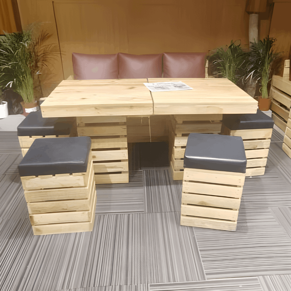Upgrade your space with our Pallet Bar Table. Combining rustic charm with practical functionality, this eco-friendly table is perfect for creating a cozy and inviting atmosphere in any setting. Order now and enjoy the perfect blend of style, durability, and sustainability.