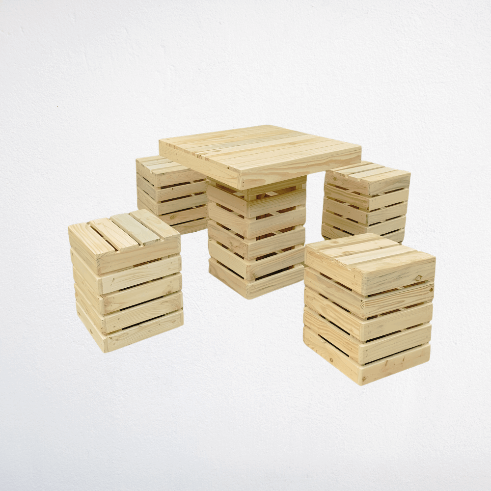 Table : 30" X 30" X 30"- 1 PIECE / Stool: 15" X 15" X 18"- 4 PIECES |
