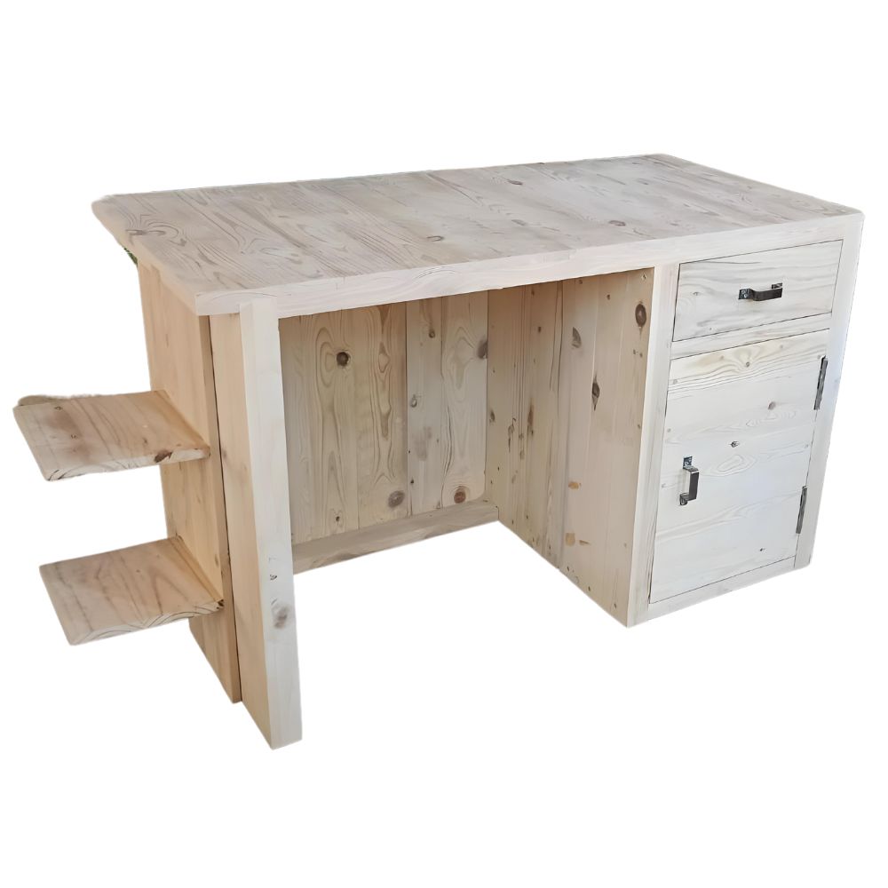 Introducing our Pallet Bill Counter with Shelves, a versatile and stylish solution for organizing bills and enhancing your workspace. Crafted from high-quality reclaimed wood pallets, this counter not only streamlines your business operations but also adds a touch of rustic charm to your environment. With its sturdy construction, practical design, and integrated shelves, it's the perfect addition to any commercial space.