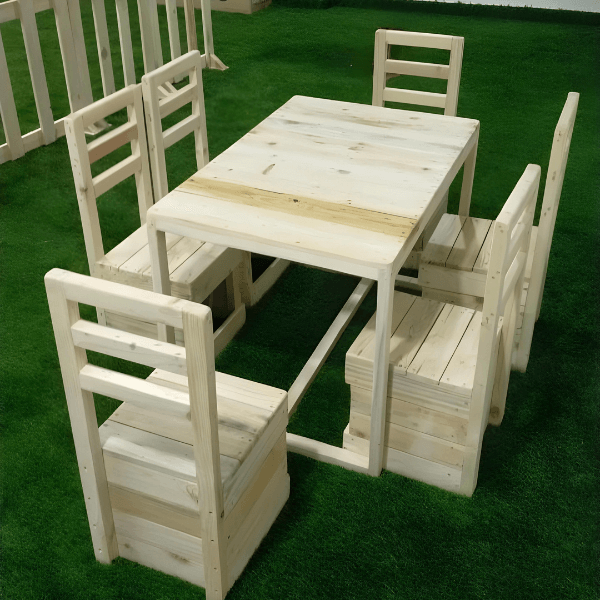 Elevate Your Playschool Environment: Enhance your playschool with our Kids Dining Table with Stools from PalleTrendz, a perfect blend of safety, durability, and fun. Designed to meet the needs of young children, this pallet furniture set provides a practical and inviting space for a variety of activities. Order now to create a vibrant and functional environment where children can learn, play, and grow.