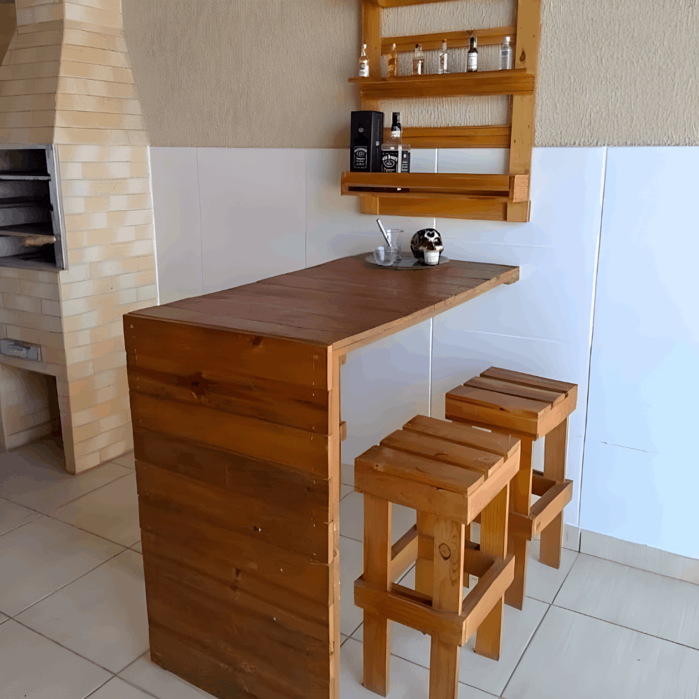 Transform your entertainment space with our Pallet Bar Counter with Wall Support. Combining rustic elegance with practical functionality, this eco-friendly and stylish piece is perfect for creating a welcoming atmosphere for gatherings and socializing. Order now and enjoy the perfect blend of stability, style, and sustainability in your home or business.
