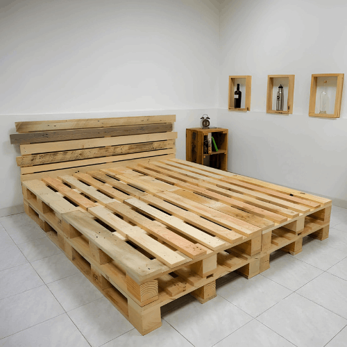 Rustic Charm with Integrated Headrest The natural textures and grains of the pallet wood give this bed frame a distinctive rustic appeal. The integrated headrest provides additional comfort and support, allowing you to lean back comfortably while reading or relaxing in bed.